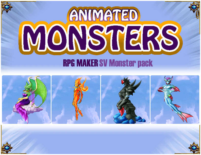 Each pack includes 4 Animated Monsters to bring more LIFE and FUN to your game in RPG MAKER. Hand-drawn and digitally retouched to enhance the experience in your fantasy games.